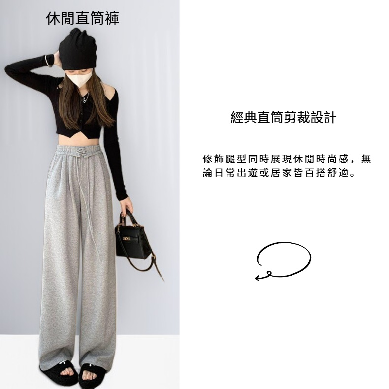 ● 經典直筒剪裁設計,修飾腿型同時展現休閒時尚感,無論日常出遊或居家皆百搭舒適。